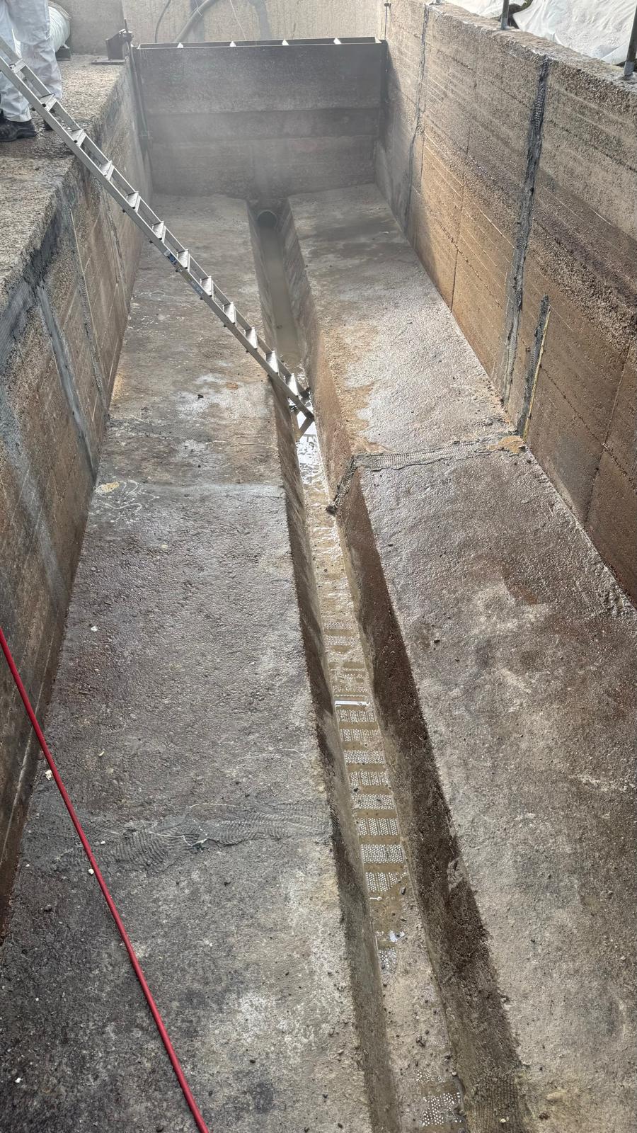 Für dieses Projekt durfte Hermes Technologie seine umfassende Expertise in Beratung und technischer Unterstützung unter Beweis stellen. Ziel war die Sanierung eines Kläranlagenbeckens, das von Rissen, Löchern und Infiltrationen betroffen war. Im ersten Schritt wurde eine Begehung des Bauwerks durchgeführt, um das geeignete Sanierungsverfahren sowie die passenden Materialien für eine dauerhafte Lösung festzulegen. Unser Anwendungstechniker begutachtete die Schäden vor Ort und entwickelte daraufhin den Sanierungsplan.