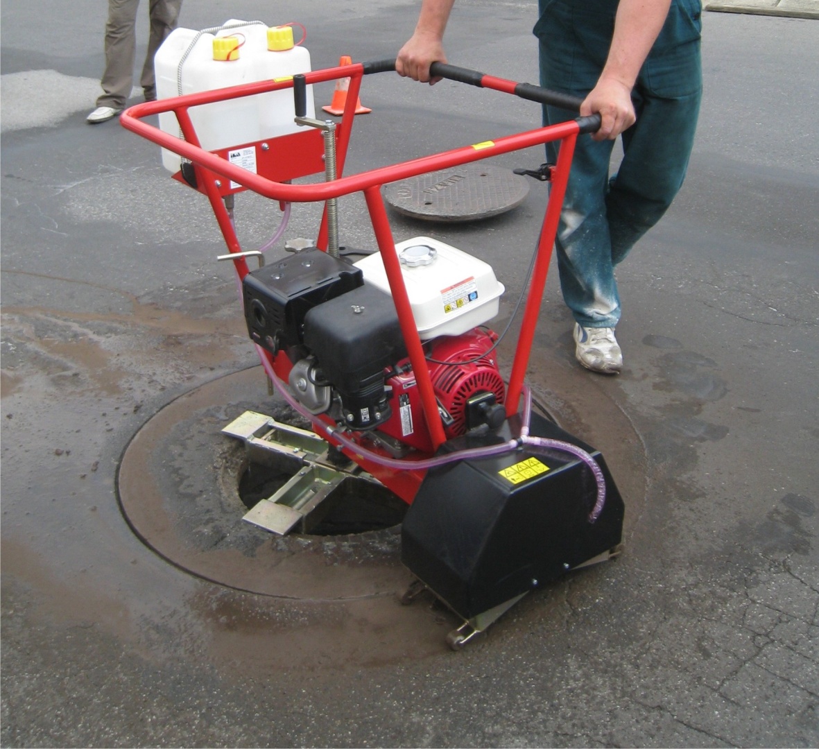 - Präzises halbautomatisches Ausschneiden von Schachtabdeckungen aus Asphalt und Beton