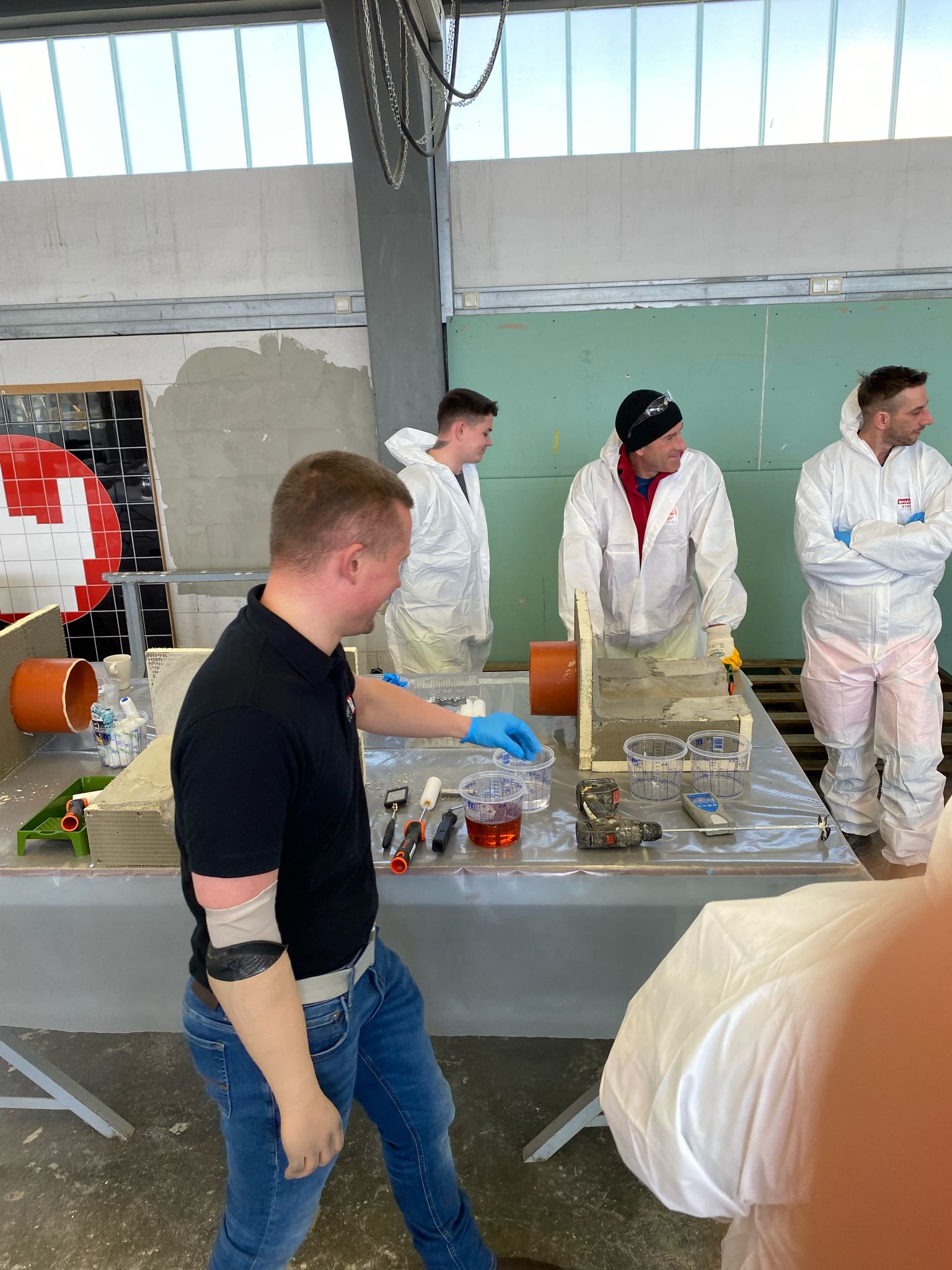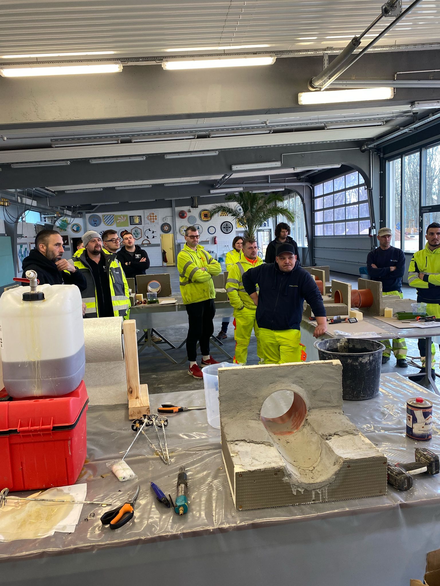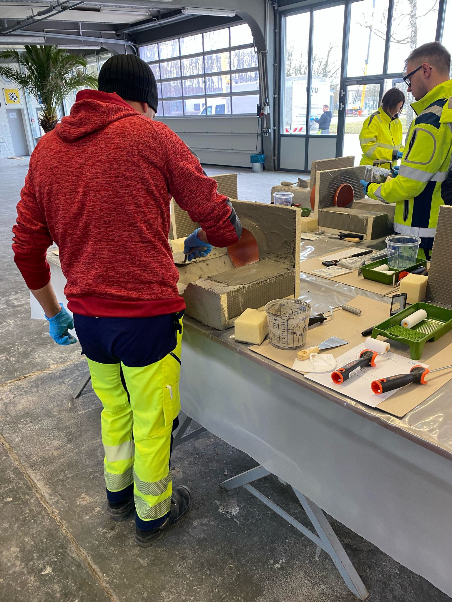 Hier konnten die Teilnehmer die manuelle Applikation von Beschichtungsmörtel realitätsnah trainieren: