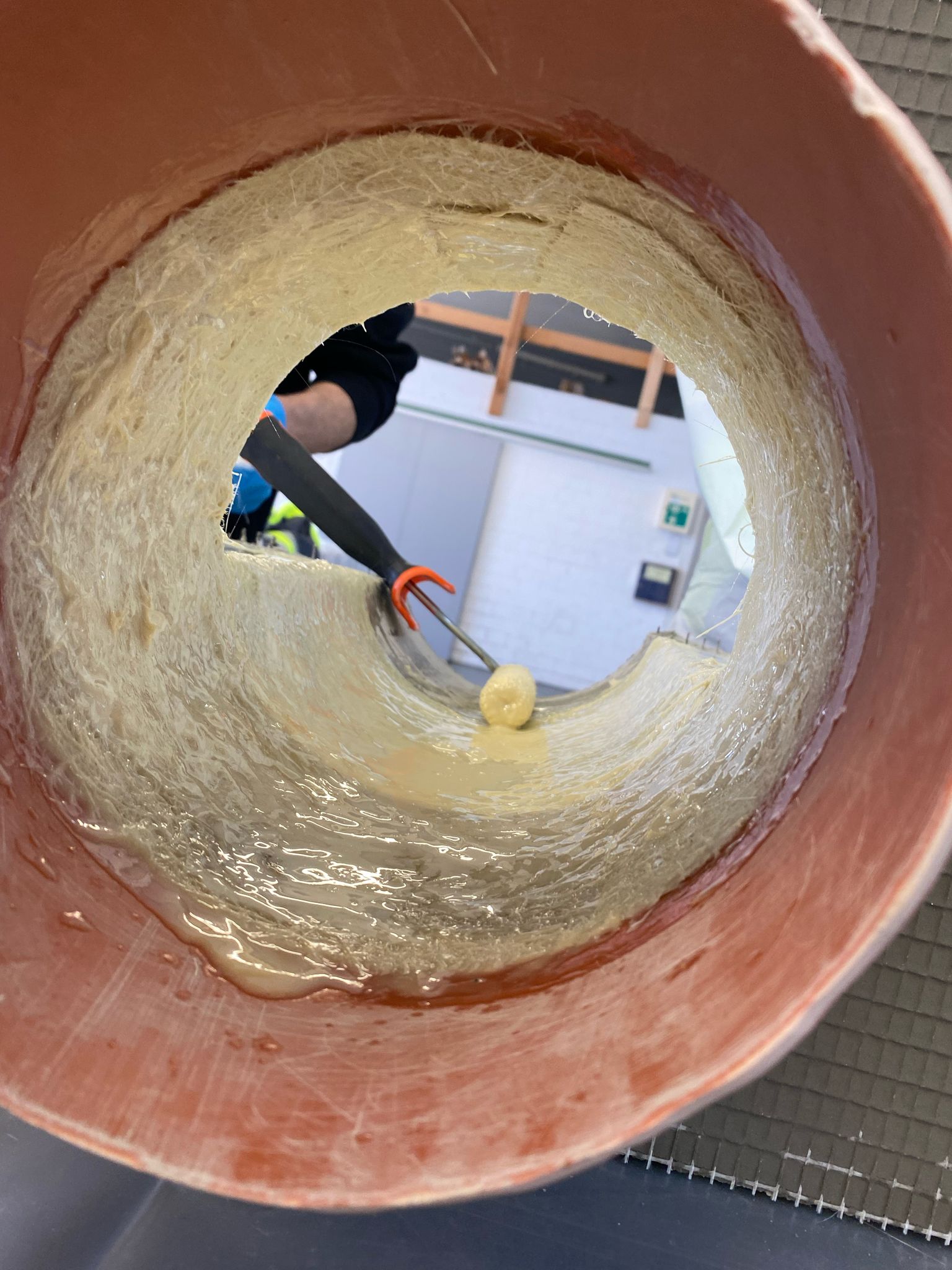Maschinelle Schachtbeschichtung im Anschleuderverfahren (ggf. simuliert in einer Tonne)